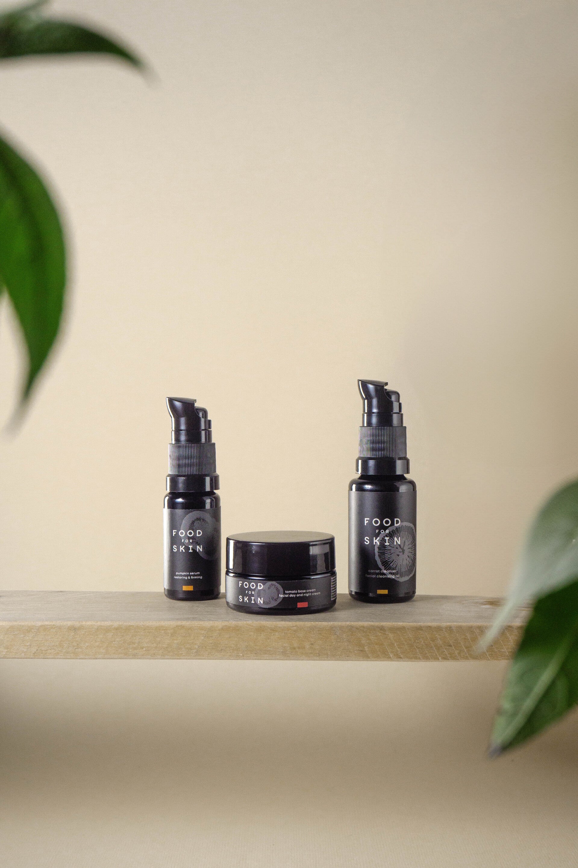 Ik werk met de producten van Food for Skin, een huidverzorgingsmerk dat 100% natuurlijk is en ontwikkeld vanuit groenten- en plantenextracten. De producten zijn eenvoudig, eerlijk en doeltreffend. Een overzichtelijke lijn die jouw huidbarrière versterkt én de aarde spaart.